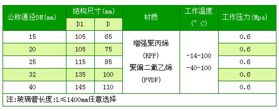 玻璃管法兰视镜型号规格及安装尺寸表: