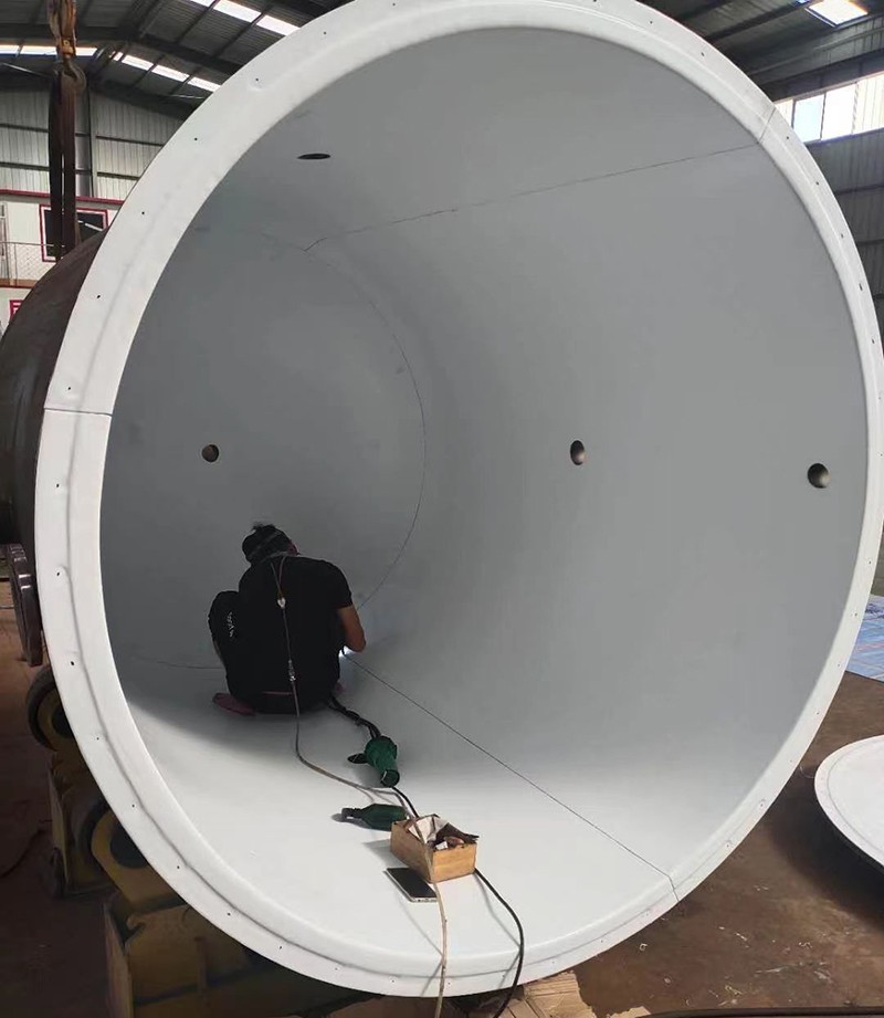 6、喷涂四氟涂层检查,在喷涂过程中及喷涂完一个罐后,对全部涂层进行检查,主要检查有否漏喷,表面是否平整光滑和机械损伤等可见缺陷,然后进行修补。